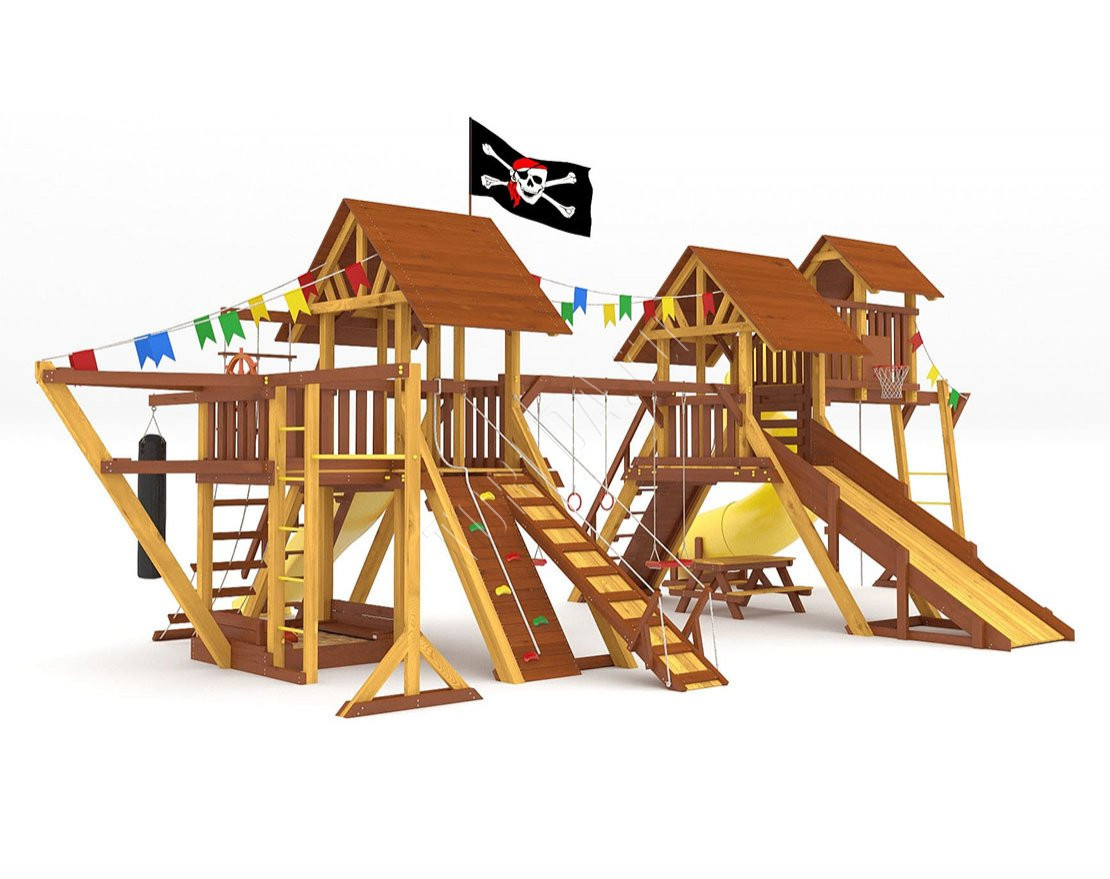 Площадка Галиот 16 обладает довольно широким функционалом (который по желанию можно легко расширить). А на качелях могут кататься даже родители! Детская площадка предназначена для дачи, коттеджа.
