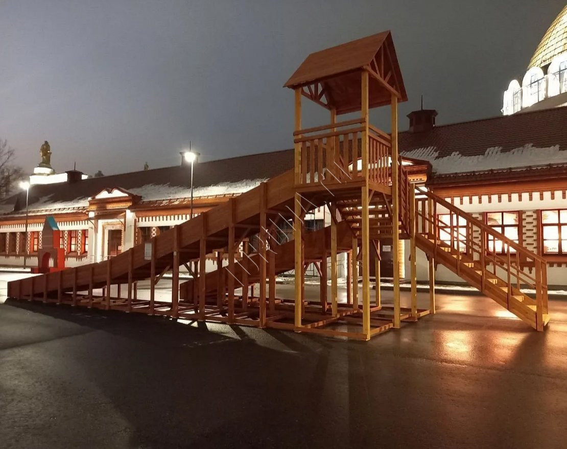 Активные дети готовы проводить время на свежем воздухе даже зимой. А деревянная горка «TORUDA Север» - 9/2 – лучшее сезонное предложение для просторных спортивно-игровых площадок.