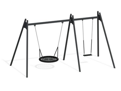 Качели оборудованы двумя типами сидений, чтобы дети сами выбрали понравившийся. С помощью качелей, ребёнок развивает коммуникативные навыки, физические качества и формирует вестибулярный аппарат.