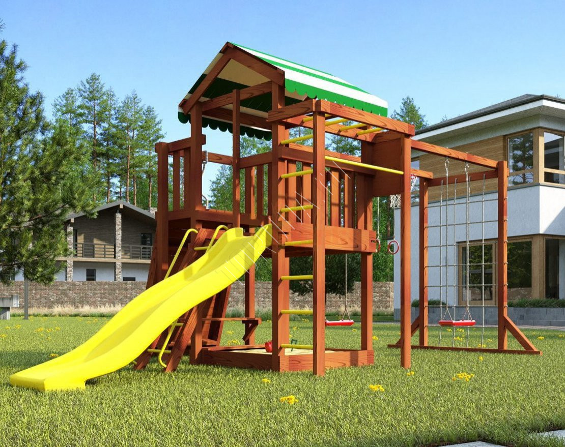 Это универсальный детский игровой комплекс, сочетающий в себе спортивные и развлекательные элементы. Он создан для того, чтобы ребёнок мог проводить время на свежем воздухе с пользой для здоровья, развивая физические навыки и фантазию.
