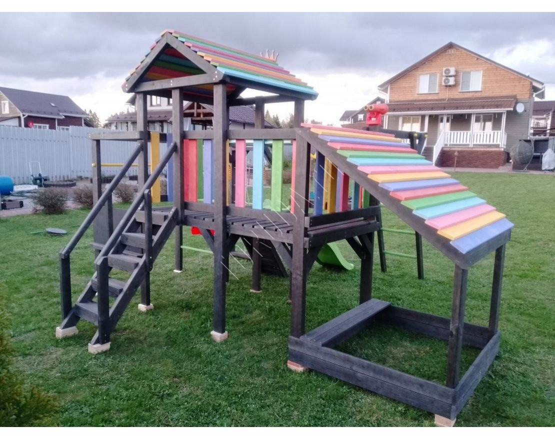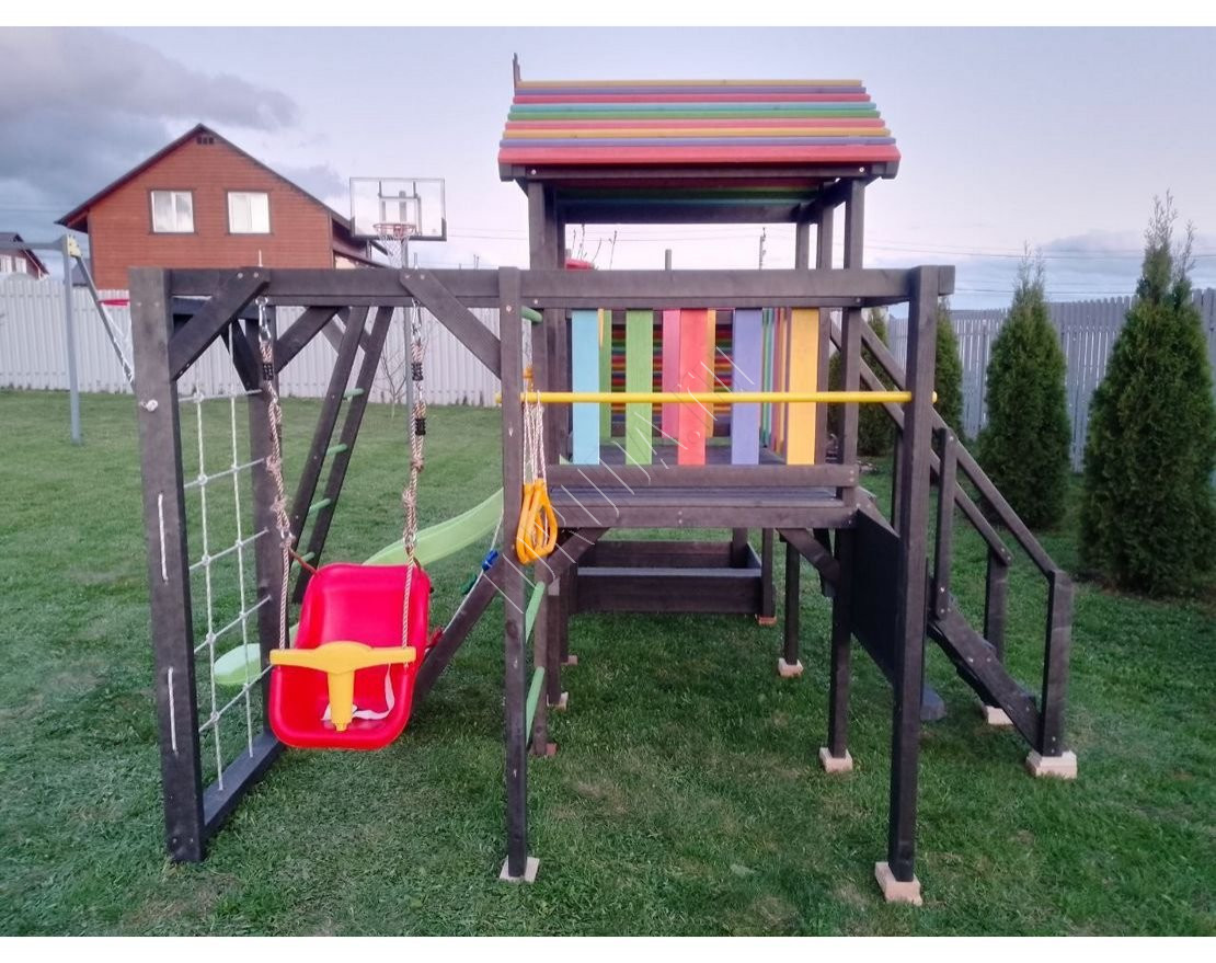 Детская площадка обладает довольно широким функционалом, предназначена для дачи, коттеджа.