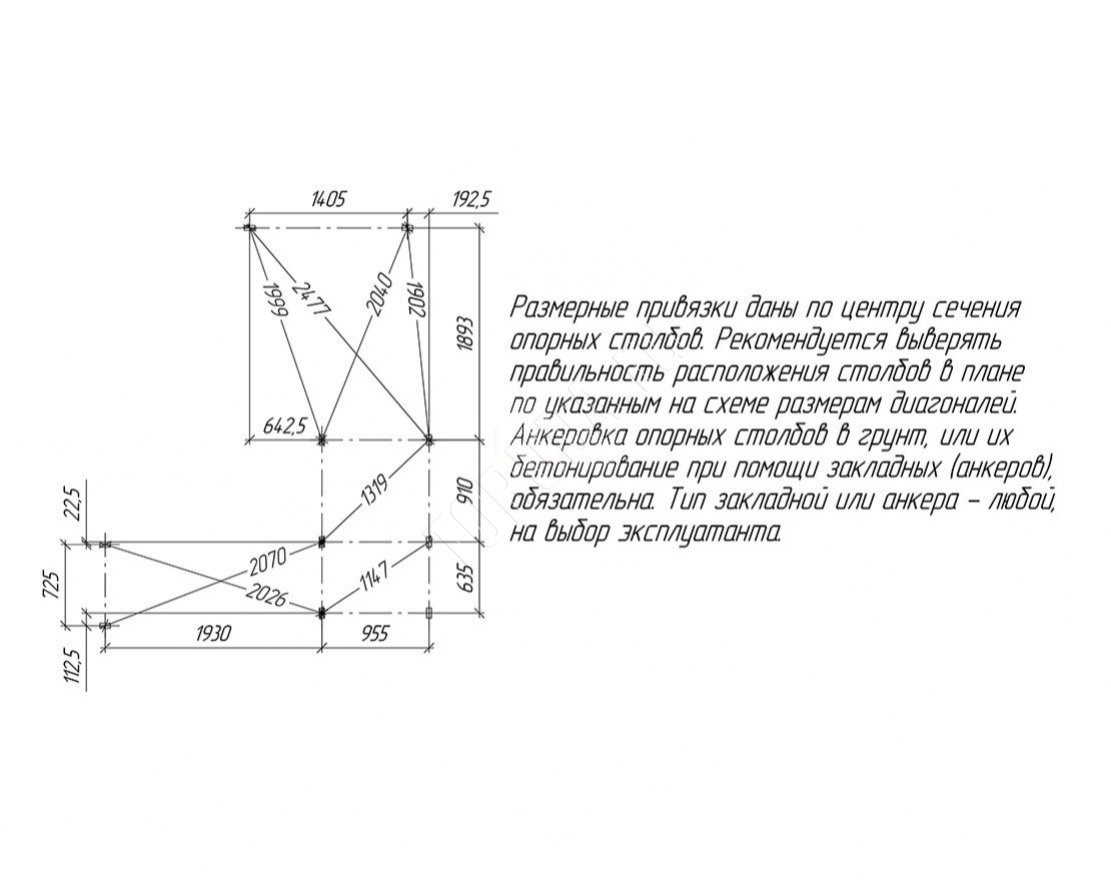 Для установки данной площадки рекомендуется закрепить её анкерами (6 шт). Анкера в комплект не входят, приобретаются дополнительно.