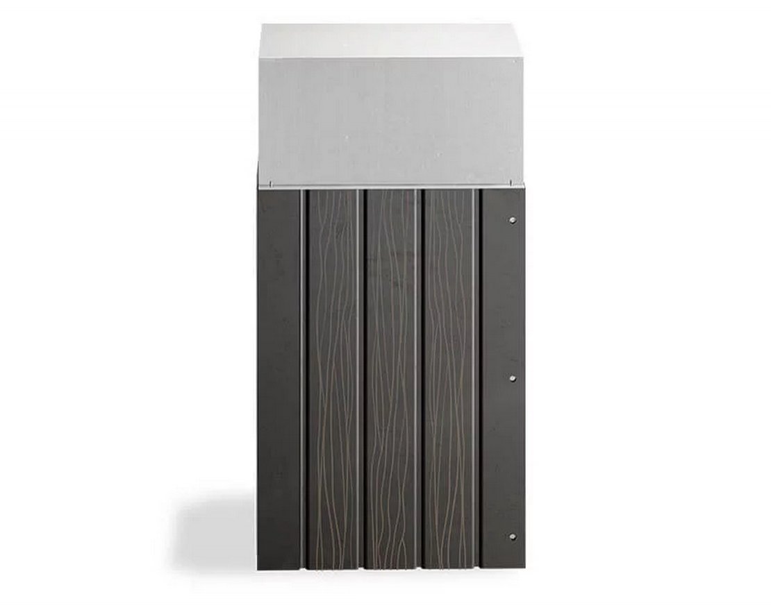 Функциональная уличная урна с металлической конструкцией сверху может располагаться у входа в ТЦ, БЦ, магазины и банки, а также дополнять парковые скамьи. Для удобства пользования урна оборудована съемным контейнером для мусора и навесом для защиты от осадков.