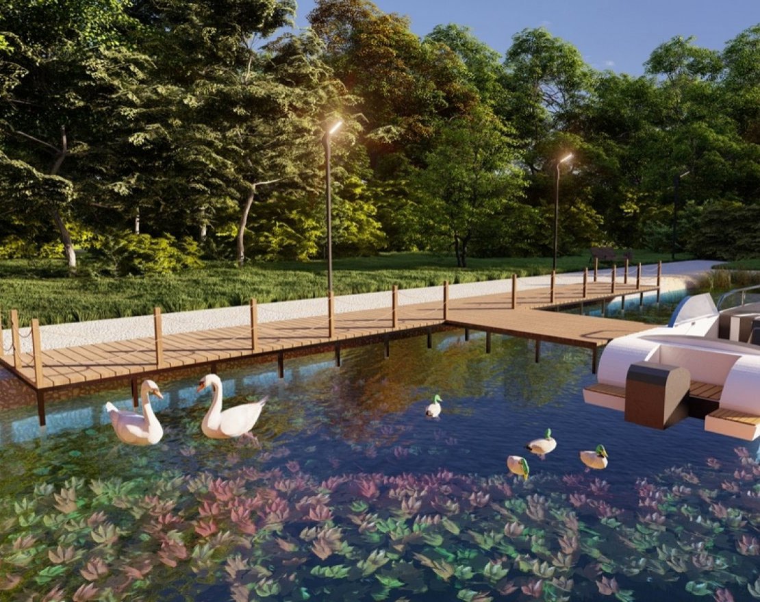 Пирс будет укреплен сваями, что обеспечит его стабильность и прочность.